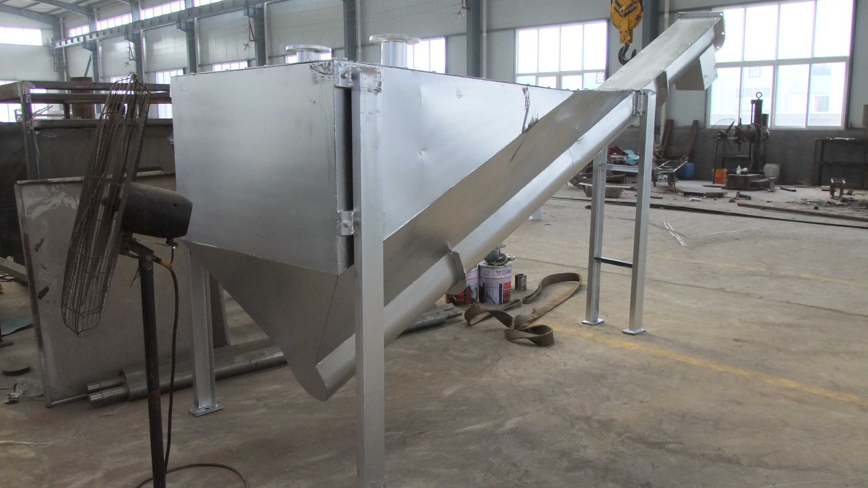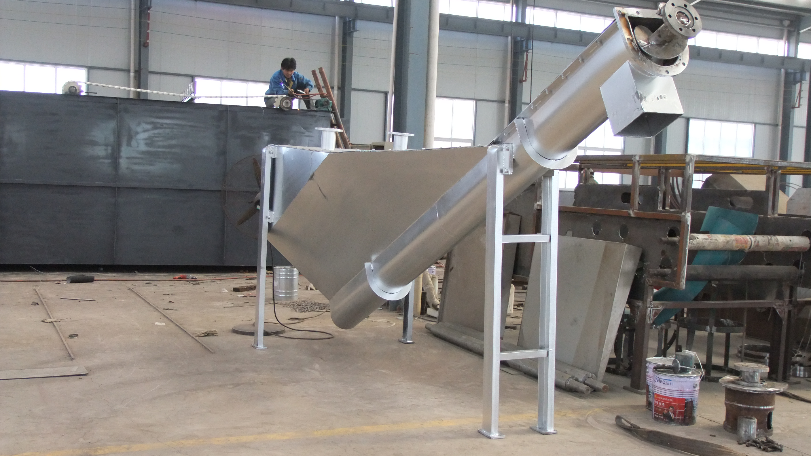 砂水混合物從分離器一端頂部輸入水箱,混合液中重度較大的,如砂粒等將沉積于槽型底部,在螺旋推動下,砂粒沿斜置的槽底提出升,離開液面后繼續(xù)推移一段距離,在砂粒充分脫水后經(jīng)排砂口卸至盛砂桶,而與砂水分離后的水從溢流口排出并送往廠內(nèi)進(jìn)水池。